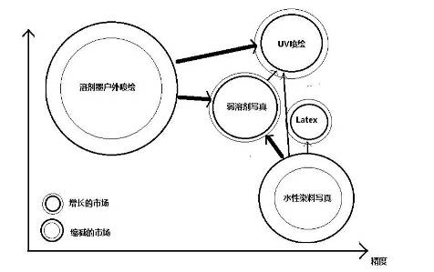 基于UV墨水的平板打印機市場,噴繪沒有涂層的材料,多種應用,以替代傳統(tǒng)絲網(wǎng)印刷為主。